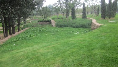 邊坡植草綠化,根據(jù)地形設(shè)計(jì)坡度,保證邊坡穩(wěn)定性的同時(shí)考慮景觀效果。邊坡植草,不僅美化環(huán)境,植物根系生長利于邊坡穩(wěn)定,固結(jié)土壤,減少水土流失。